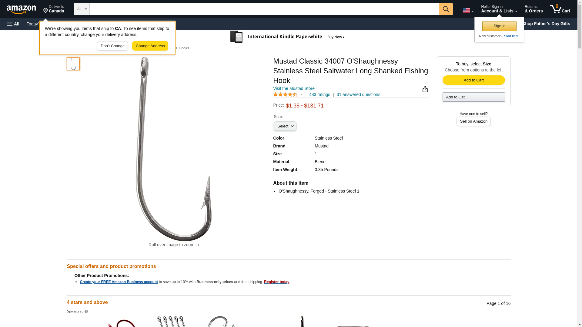 Mustad 34007 Classic O' Shaughnessy Stainless Steel Forged Hook (100-Pack), Size 4 (34007-SS-4-100)