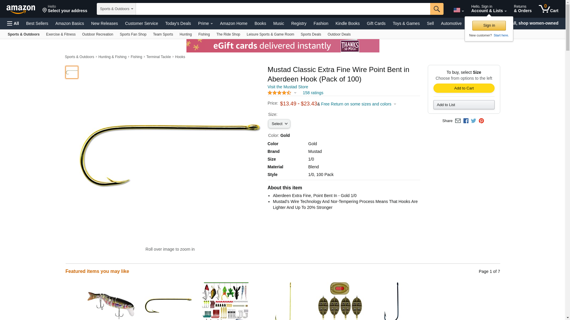 Mustad Hooks Mustad Abeerdeen Hook Gold Fine Wire 100/Bx Md#: 37363-4 - 1019925