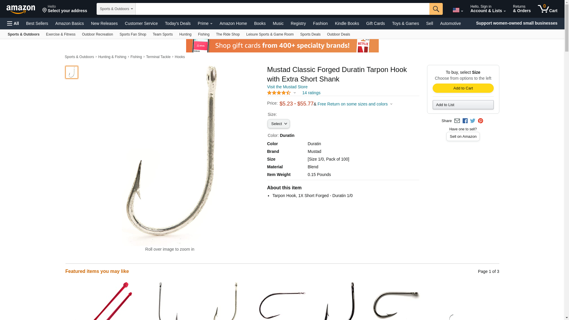 Mustad Classic Forged Duratin Tarpon Hook with Extra Short Shank (Pack of 100), 8/0