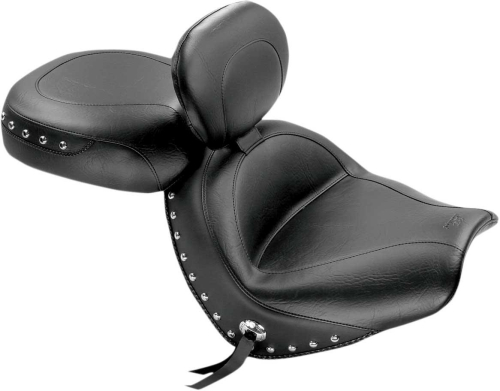 <strong>Wide Touring Two-Piece Seat with Driver Backrest</strong> <li>BRAND: Mustang</li> <li>MPN: 79560</li> <li>Additional Info: Studded</li>
