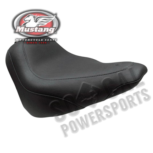 Seat Style: Smooth - Black<br><br>Mustangs advanced comfort technology has been incorporated into this totally new style of custom seat..<br> Now you can ride low and look cool and still be comfortable at the end of the days ride..<br> Detailed stitch work in the highly durable, synthetic glove-leather cover.<br> Made in the USA.<br> Front Width: 13in.