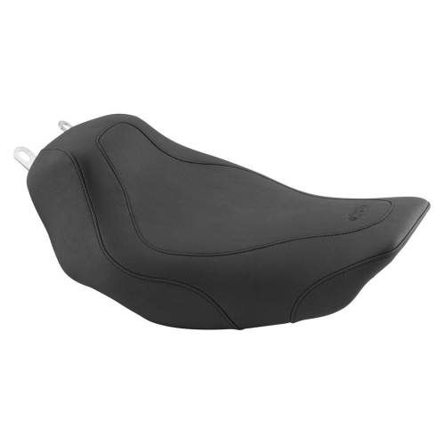 Mustang's advanced comfort technology has been incorporated into this totally new style of custom seat.<ul><li>Now you can ride solo on a sleek low seat and still be comfortable at the end of the days ride</li><li>Detailed stitch work in the highly durable, syntetic, </li></ul>