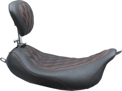 Mustang Wide Tripper Seat with Driver Backrest - Doble Diamond - Black/Red - 79727AB