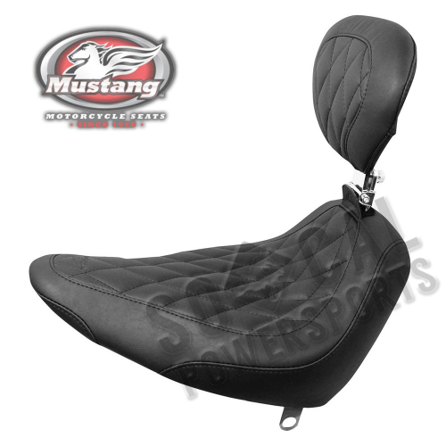 Mustang Motorcycle Seats Tripper Wide Solo Seat with Backrest - Diamond Pattern for 00-06 Harley FLSTC