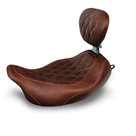 Mustang Brown Wide Tripper Solo Seat with Diamond Stitching and Backrest 79811