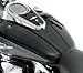 Contour-formed to tightly hug the gas tank<br />Felt-backed to protect paint<br />Premium-quality, expanded vinyl cover<br />Available with studs and a leather-tied concho or plain<br />Braided edge trim<br />Utilize stock mounts and hook-and-loop fasteners for easy installation<br />Made in the U.S.A.<br /><br />Tank Bib Installation:<br />1. Remove the seat and position the bib on the tank with the cutout around the dash.<br />2. Thread the lower loop of elastic cord under the frame at the base of the tank, then stretch the loop wide and pull it forward over the latch bracket.<br />3. Rest the center of the larger elastic cord on the fuel cap. Route the cord under the front of both sides of the tank.<br />4. Pull the center of the cord back to the rear of the tank, guiding the cord under the tank.<br />5. Hook the center of the cord under the base of the tank securely. Besure the cord is routed around the latch release cable as pictured.<br />6. Reinstall the seat.