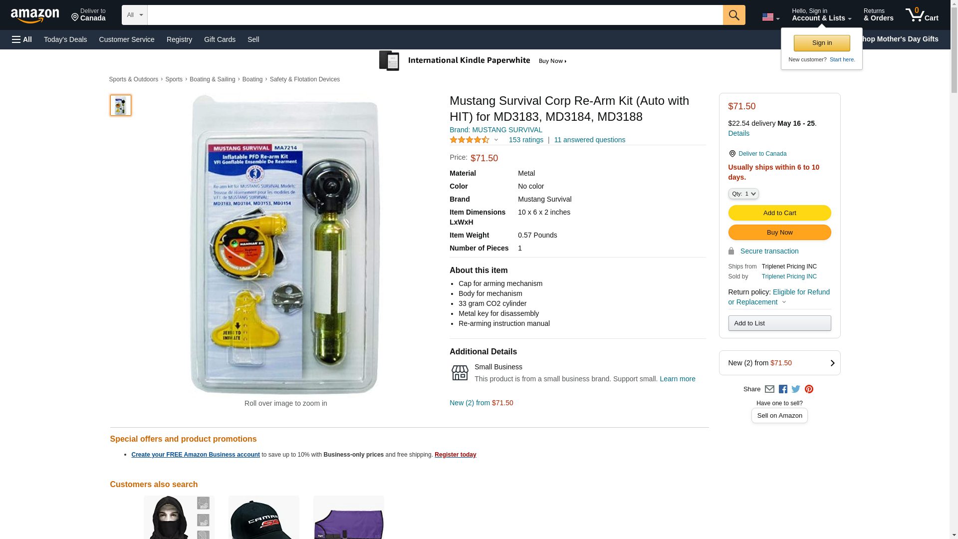 Hydrostatic Inflator Re-arm Kit::MA7214 The Auto Hydrostatic Re-Arm Kit contains everything necessary to re-arm your Mustang auto Hydrostatic inflatable after deployment. The auto Hydrostatic inflator cap and body on all automatic PFDs should be replaced before the date on the cap passes.Contains:an Auto Hydrostatic inflator which includes a cap body (with 38gram CO2 cylinder) metal key and a re-arming instruction manual. Use only Mustang Survival re-arm kits. Use of other re-arm kits may result in improper operation or failure to operate and will void the product's warranty.Regular maintenance can reduce the possibility of premature inflation. Refer to your Owner's Manual for maintenance schedule. Product : MUSTANG RE-ARM KIT FOR MD3183 & MD3184 Manufacturer : MUSTANG SURVIVAL Manufacturer Part No : MA7214 UPC : 062533085268