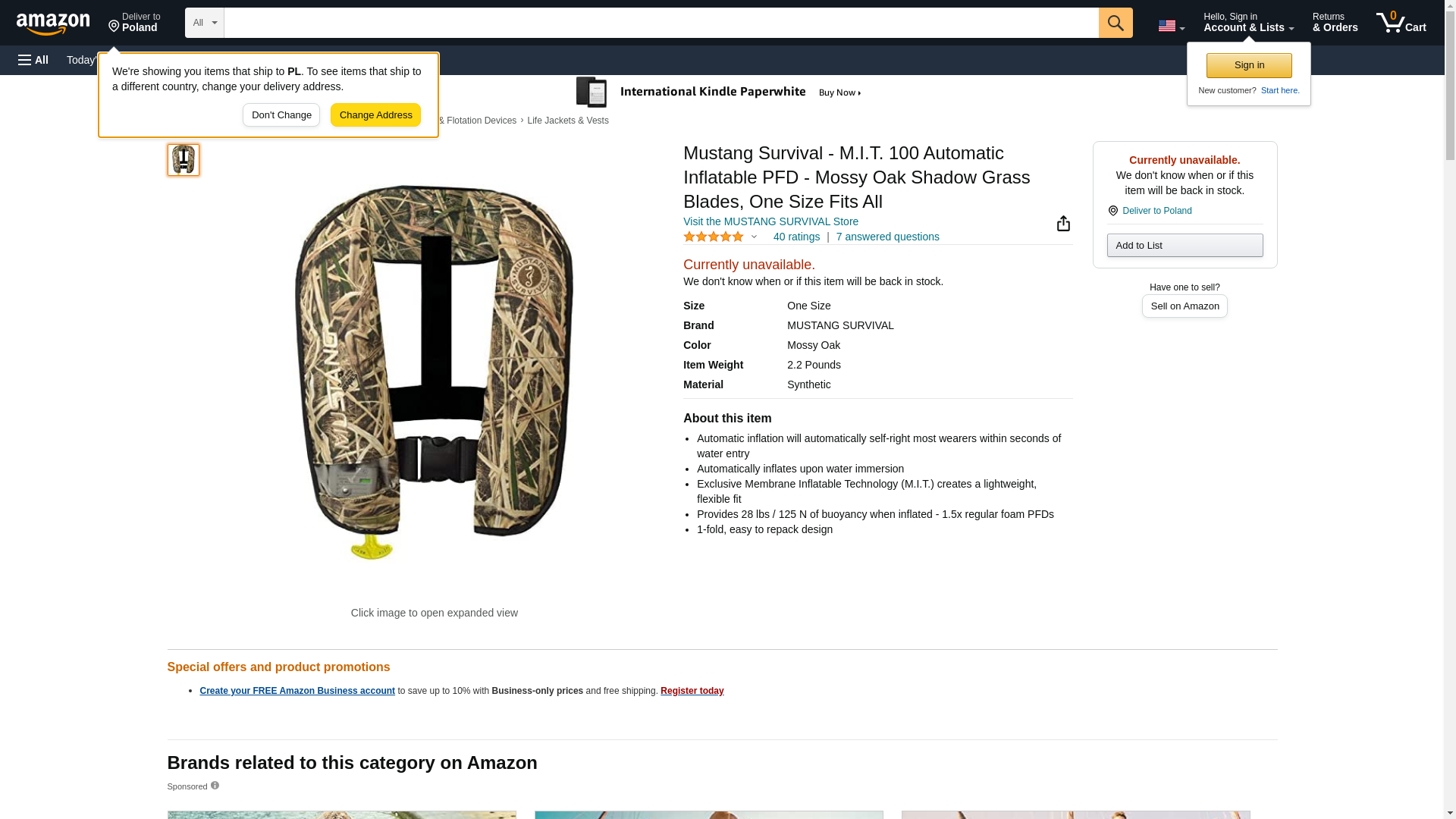 | Feature | Mustang Mit 100 Inflatable Pfd Automatic Camo |