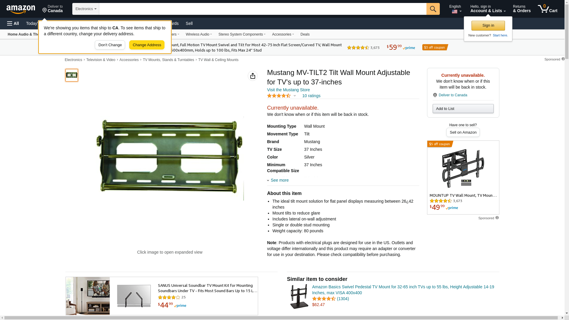 Mustang MV-TILT2 Tilt Wall Mount Adjustable for TV's up to 37-inches