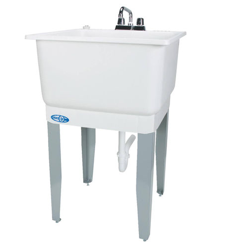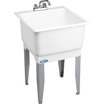 Mustee 14CP Polypropylene Freestanding Tub Utility Sink with Drain and Faucet, One Size, White