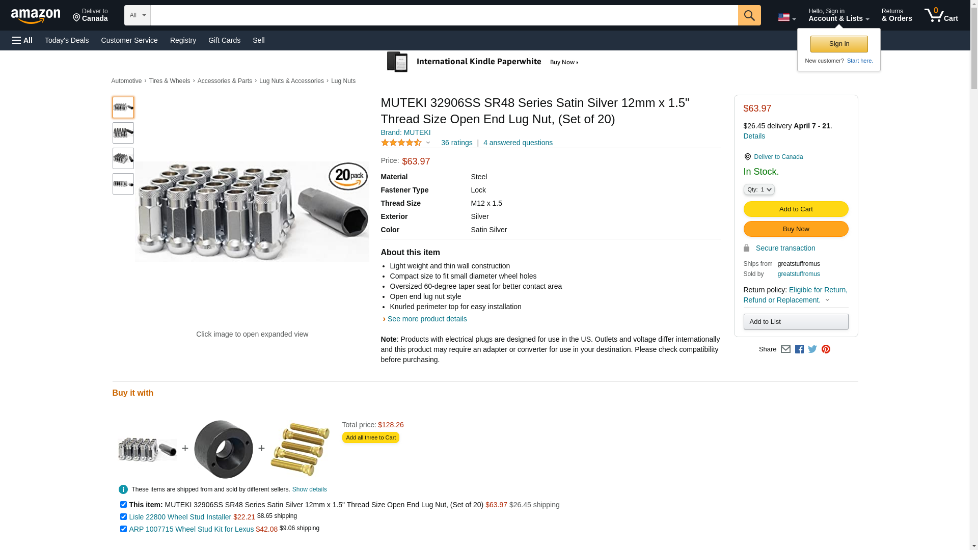 Muteki 32906S SR48 Series Silver 12mm x 1.5" Thread Size Open End Lug Nut, (Set of 20)