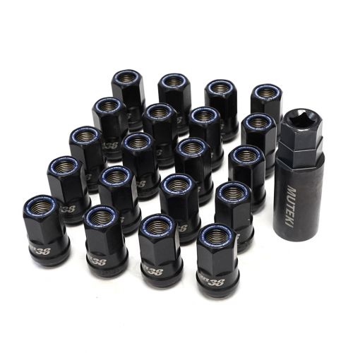 Muteki HR38 12x1.50 Black Chrome w/ Blue Ring Open End Lug Kit | HR3806BU