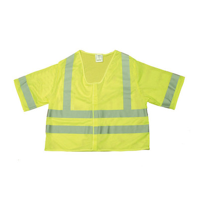 Mutual 16364 High Visibility Polyester ANSI Class 3 Mesh Safety Vest with 2" Silver Reflective Stripes, 4X-Large, Lime