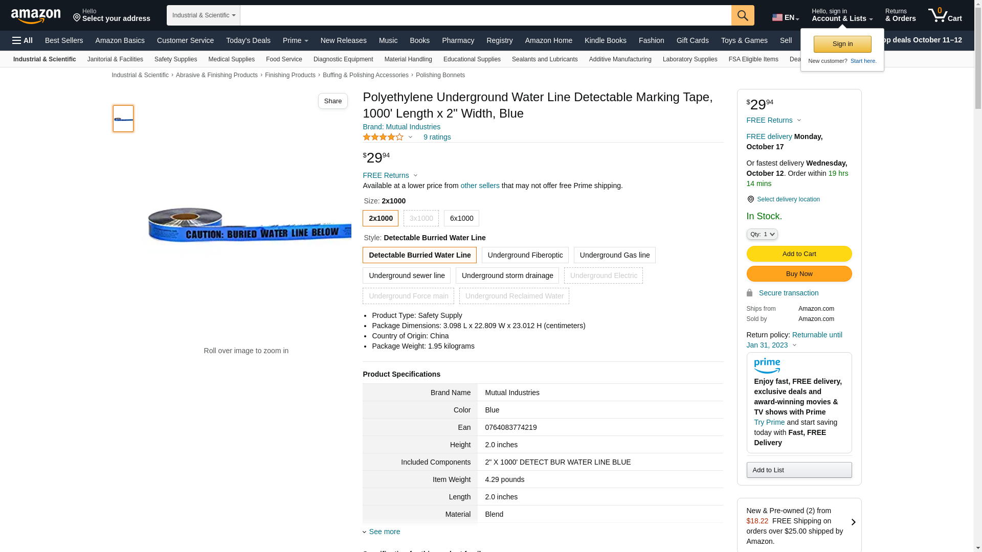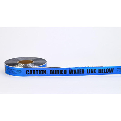 Polyethylene Underground Water Line Detectable Marking Tape, 1000' Length x 2" Width, Blue