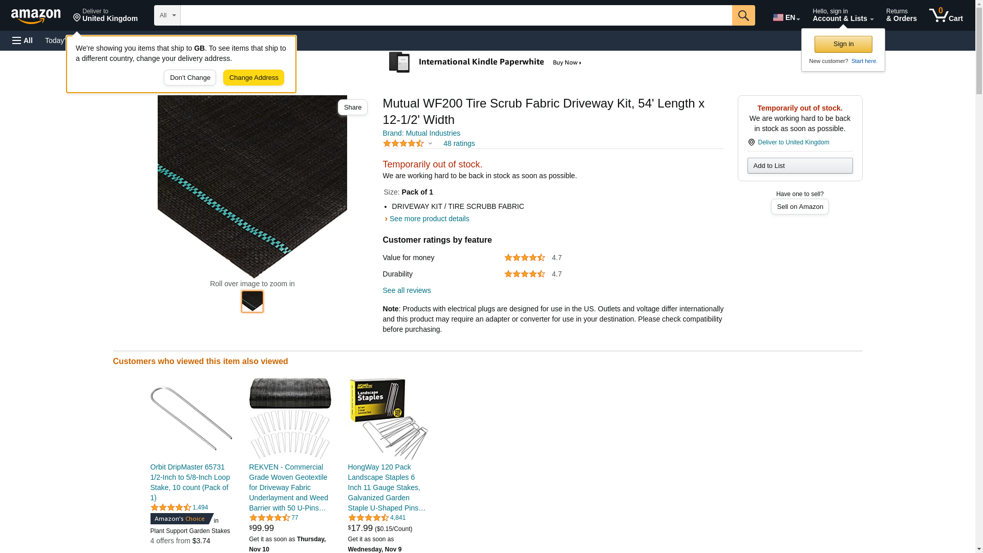 Mutual WF200 Tire Scrub Fabric Driveway Kit, 54' Length x 12-1/2' Width