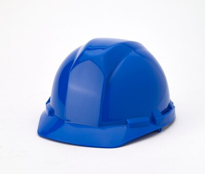 Mutual Industries 4-Point Pinlock Suspension Short Brim Hard Hat, Blue (50100-25) | Quill.com