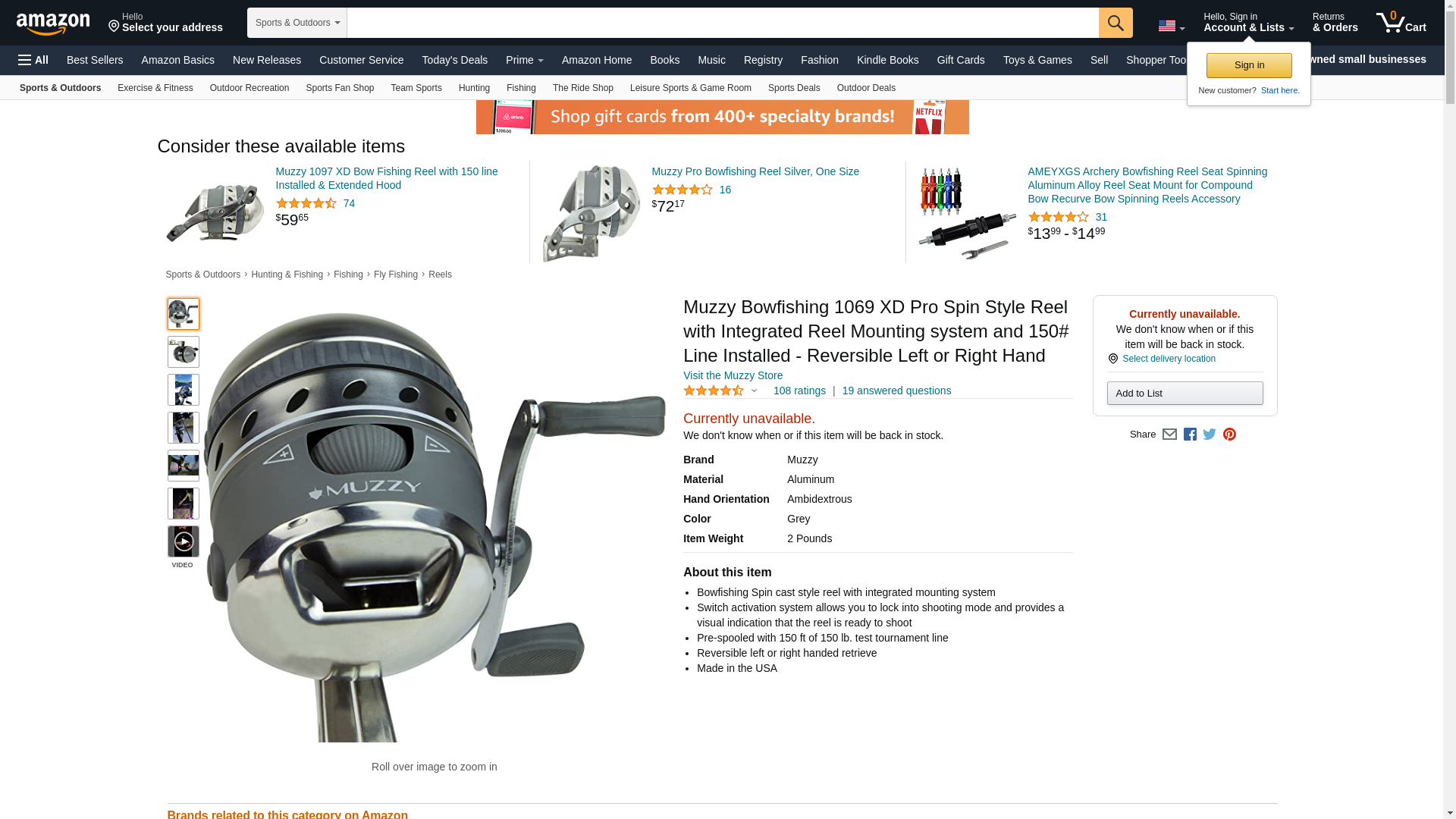 Muzzy Bowfishing 1069 XD Pro Spin Style Reel with Integrated Reel Mounting system and 150# Line Installed - Reversible Left or Right Hand