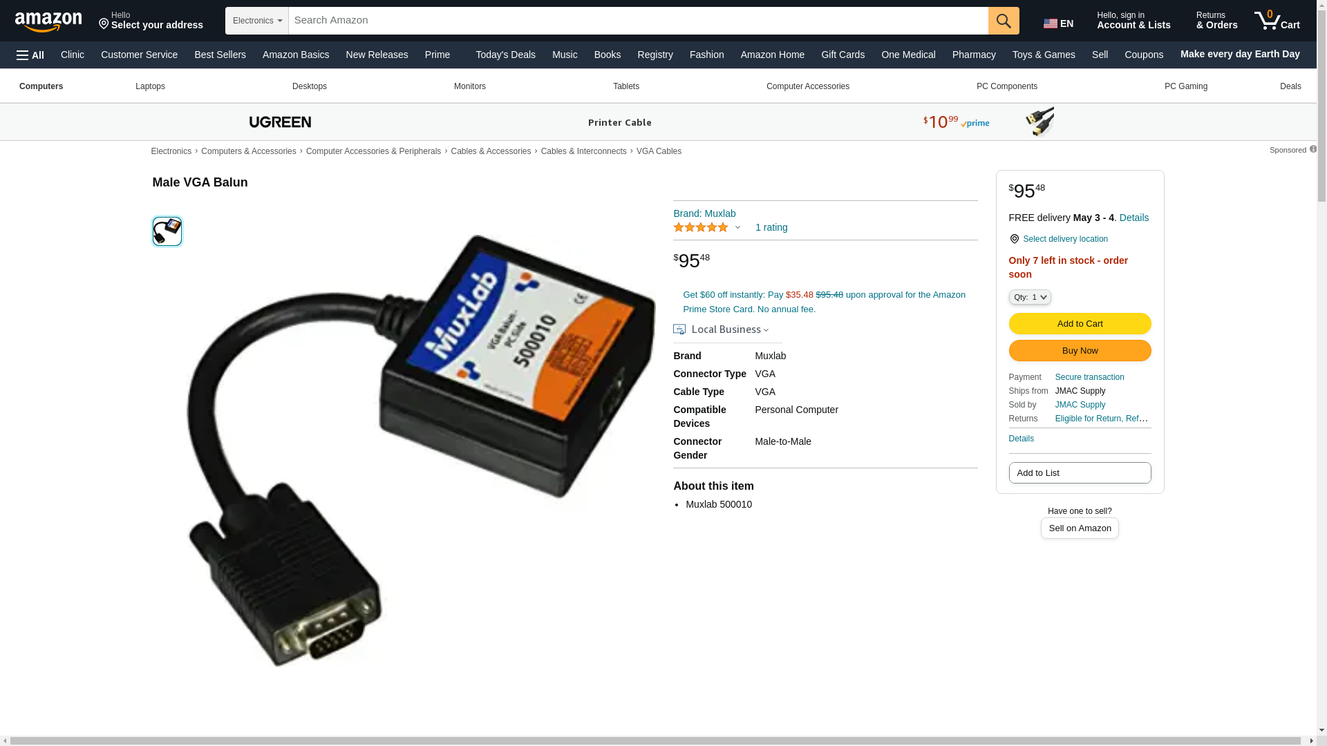 MUXLAB 500010 VIDEOEASE VGA BALUN DB15M PC-SIDE