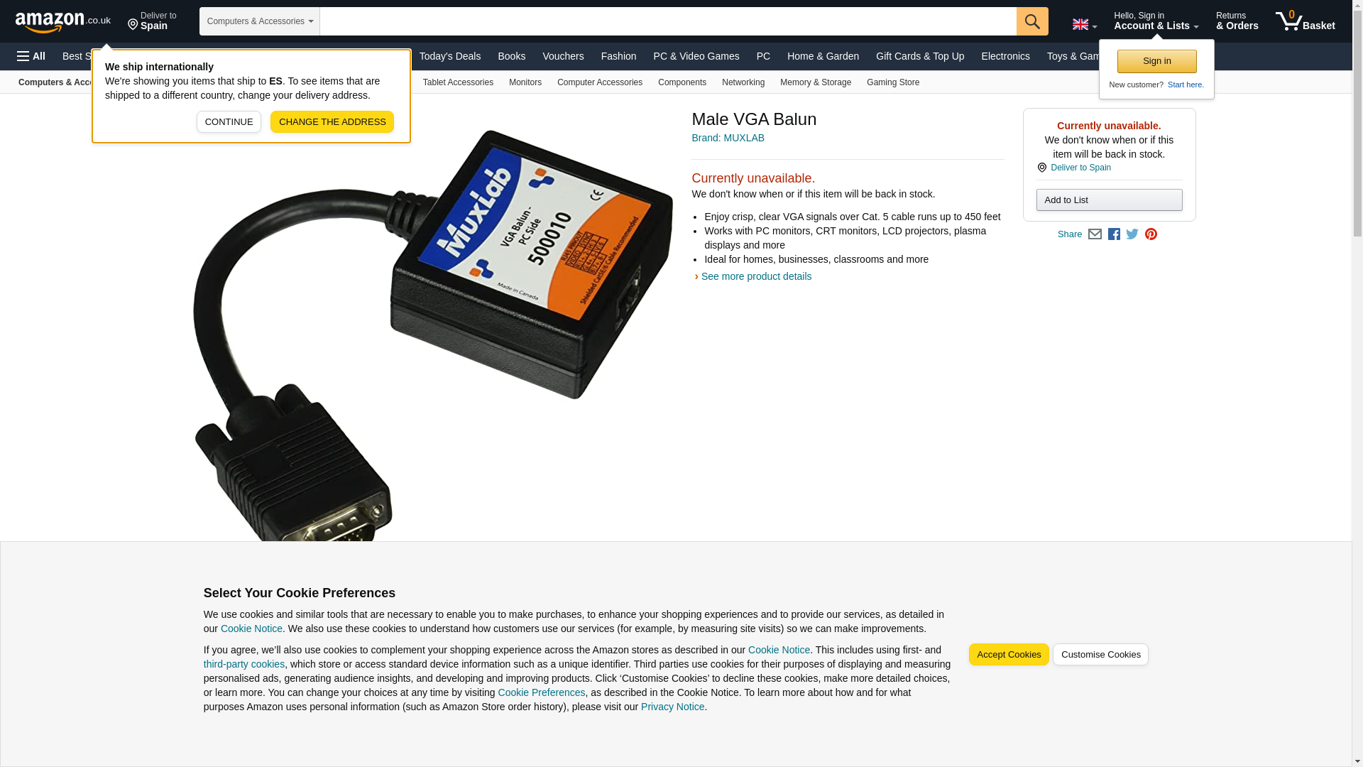 A male plug VGA balun with six inch wire lead for the PC side of the connection, to transmit VGA video up to 450 ft depending on the signal bandwidth (requires a compatible balun at each end of the Cat 5 cable, one to transmit and one to receive)