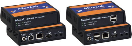 The MuxLab <strong>500457</strong> HDMI/USB 2.0 Extender Kit allows one HDMI 1.4 and one USB 2.0 channel to be transmitted up to 330ft (100m) at all resolutions up to 1920?1200 @ 60Hz via one (1) Cat 5e/6 cable in a point-to-point configuration. The receive side includes a 4-port USB 2.0 hub, supporting KVM applications. Bi-directional IR transmission is supported.</p><p>Typical KVM applications include: <br />Commercial and residential AV systems<br />Classroom projector system<br />Boardroom systems<br />Collaborative PC systems<br />Medical information systems</p>
