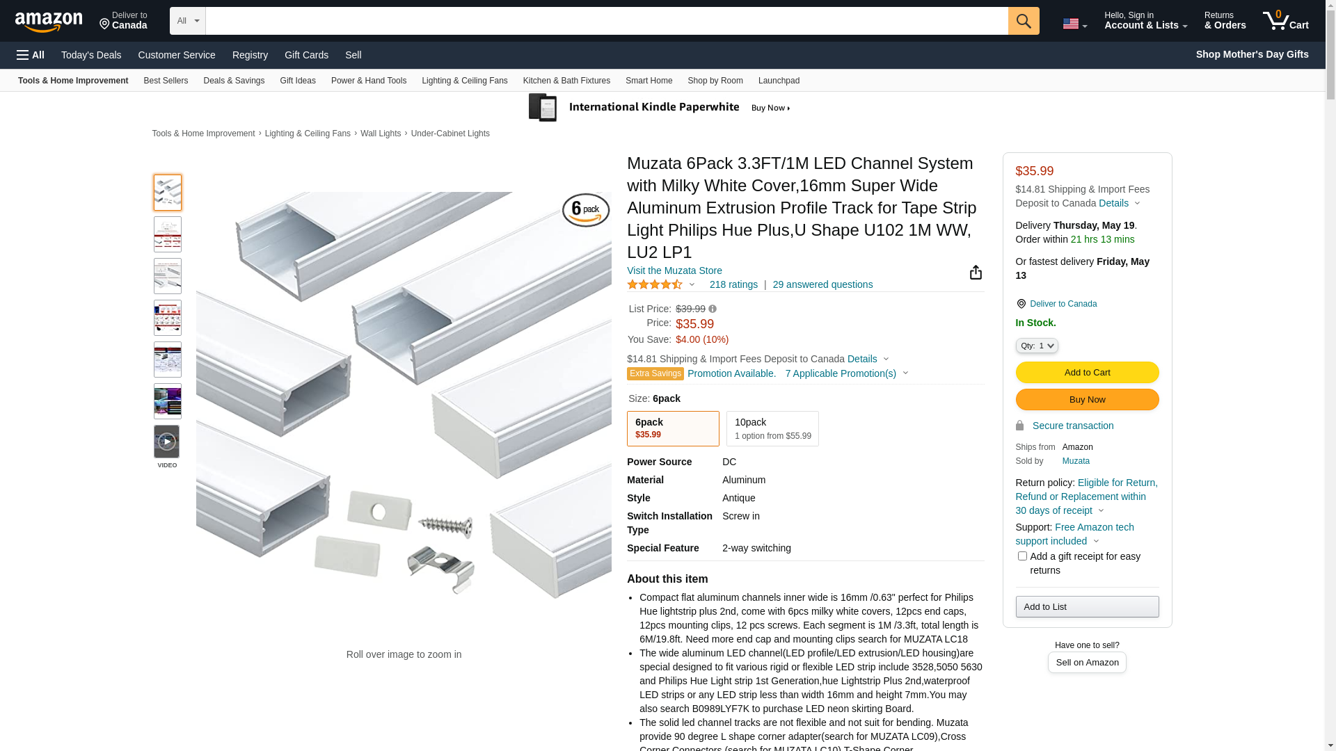 - Package include - This item includes 6pcs LED channel, 6pcs milky white led light diffuser/cover, 12pcs end caps, 12pcs mounting clips, 12pcs screws. Each segment is 1M /3.3ft, total length is 6M/19.8ft. This LED extrusion internal wide is 16mm(5/8”) and its height is 7mm(9/32”). Premium lighting effect with the new Muzata LED strip (B0BQM3Z731/B0BQM6V1RF)