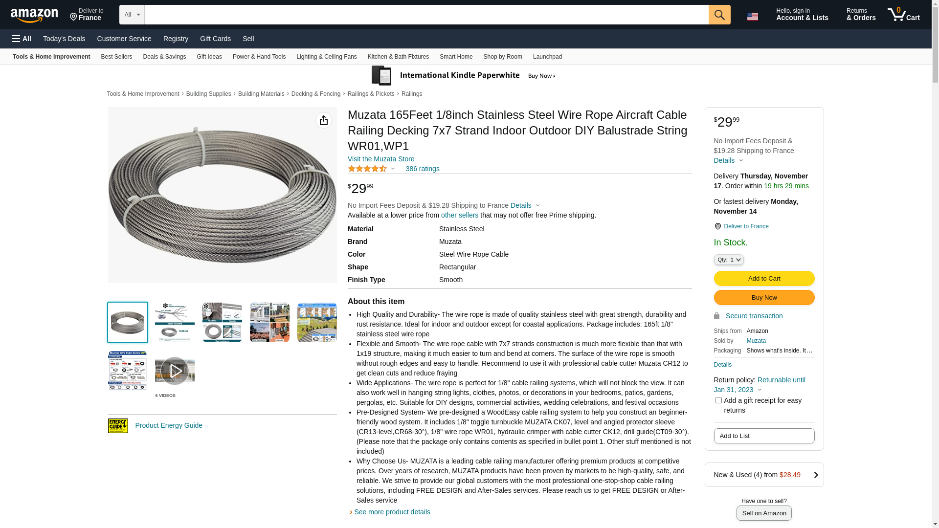 <p>Wanna buy everything you need for <b>cable railing project</b> in a minute ? </p><p>Click "<b>by muzata</b>" near the title to enter muzata <b>one-stop amazon store</b>.</p><p>Or you could copy following address into browser address bar. </p><p><b>http://www.amazon.com/muzata</b></p><p></p> stainless steel (grade of stainless steel is marine) cable for railing.