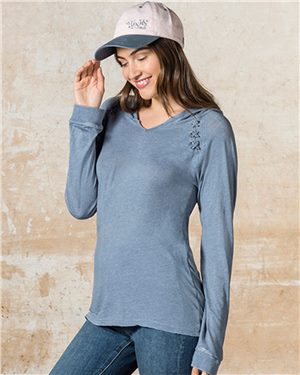 MV Sport B00552254 Womens Lace Shoulder Hooded Pullover T-Shirt, Stonewash - Medium