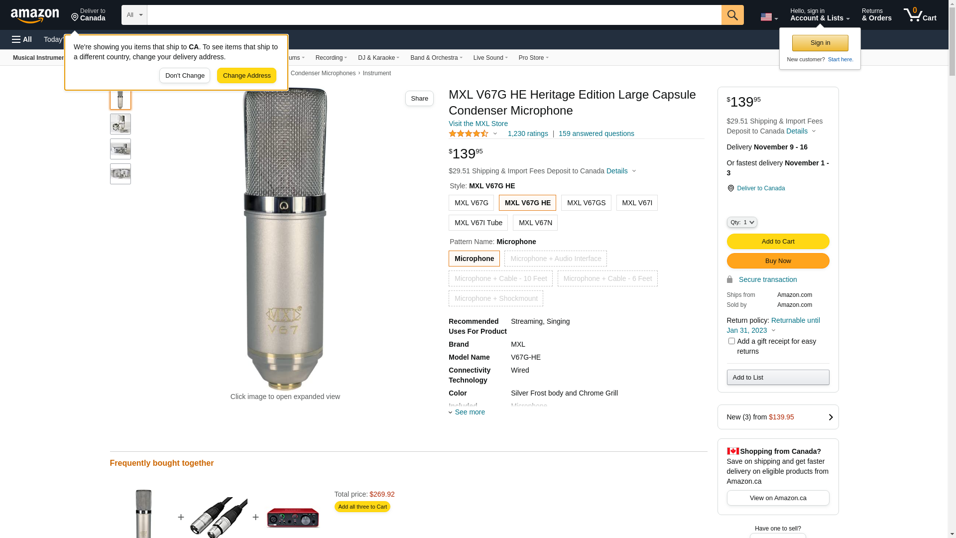 | MXL V67GHE | 1 | Out of Stock, But We'll Ship It Fast! | 1 | 1 @ $139.95 |