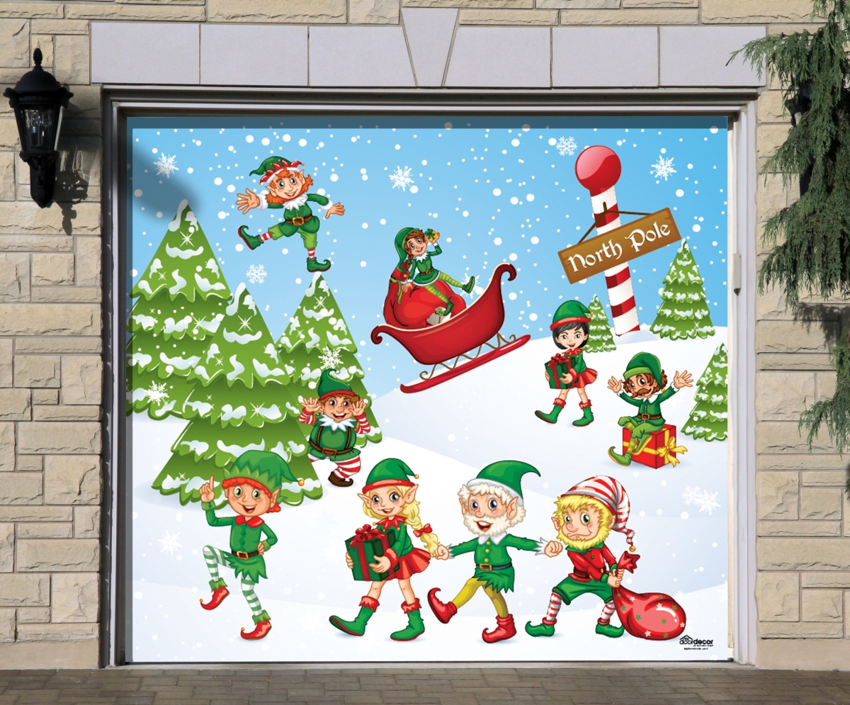 My Door Decor 285903XMAS-026 7 x 8 ft. North Pole Elves Christmas Door Mural Sign Car Garage Banner Decor, Multi Col