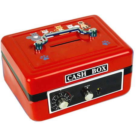 <ul> <li>Cash Box is constructed of heavy metal, featuring a handle and coin slot Birds and Animals theme</li> <li>Measures: 6" x 5" x 3"</li> <li>Easy to remember combination and 2 keys allow kids to lock up their "valuables"</li> <li>Interior is lined to hold money and other small collectible</li> <li>Ages 4 & up.</li> </ul>