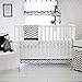 - Crib skirt is made with crisp white pique fabric, with gray Chevron band and navy accents