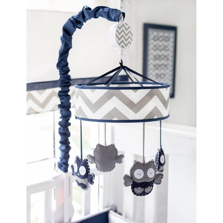 <p>The <strong>My Baby Sam Out of the Blue Mobile</strong> will ensure your sweetie gets all the sleep he or she needs to avoid turning into a little night owl. This adorable mobile has a dynamic chevron design for versatility with the calming colors of navy, white, and gray. The friendly owl characters dangling below will help your child develop a sense of depth and direction while drifting off to sleep. The tranquil look is accompanied by the soothing sound of Brahm's Lullaby to sweep your little one off to dreamland.</p> <br /> <p><strong>About My Baby Sam, Inc.</strong><br />My Baby Sam was dreamed up by mom-of-three Tori Swaim in 2001. My Baby Sam provides a fun and diverse selection of baby bedding and kids room décor at an affordable price. With their bedding, nursery and kids décor, letters, and baby gifts, My Baby Sam products will help you create a dreamy nursery or your child?s first big-kid room.</p>