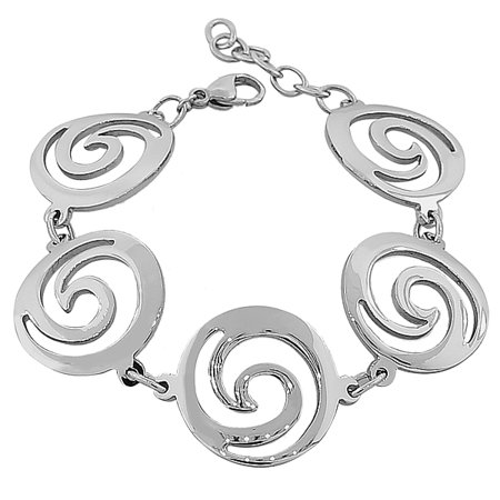 Stainless Steel Silver-Tone Circles Link Adjustable Bracelet