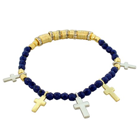 Fashion Alloy Blue Two-Tone Latin Cross Religious Stretch Beaded Bracelet