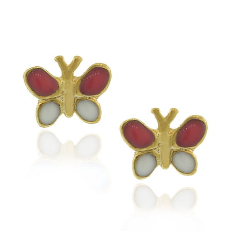Fashion Alloy Yellow Gold-Tone White Pink Butterfly Stud Earrings