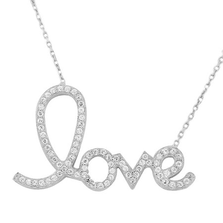 925 Sterling Silver Love Heart Charm White CZ Pendant Necklace
