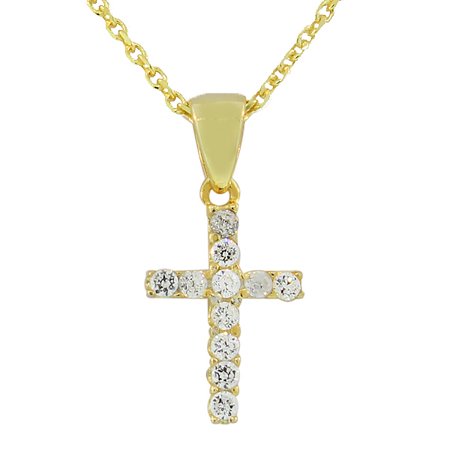 925 Sterling Silver Religious Cross White CZ Pendant Necklace