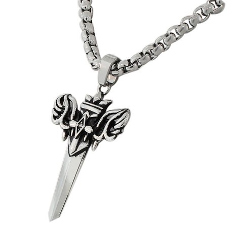 Stainless Steel Silver-Tone Large Mens Link Chain Sword Necklace Pendant