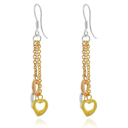 925 Sterling Silver White Yellow Rose Gold-Tone Triple Love Hearts Long Dangle Earrings