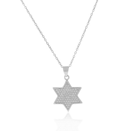 925 Sterling Silver Classic Star of David White Clear CZ Pendant Necklace, 18"