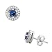 925 Sterling Silver Round Royal Blue White CZ Stud Earrings