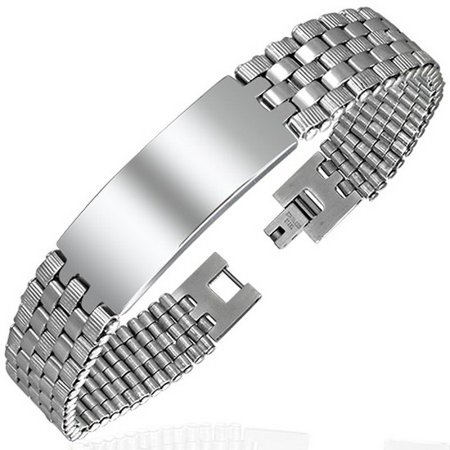 Stainless Steel Silver-Tone Name Tag Mesh Link Chain Bracelet