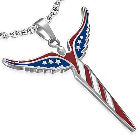 <p> Model No. AT0628 </p> <p> The stainless steel pendant will make a perfect gift. Give it to the loved one, or treat yourself for a trendy style. This pendant is crafted of durable, highly polished 100% stainless steel shining with the blue, red and white enamel coating. The necklace features a sleek design. The pendant represents the American flag. The 18.00" chain features a lobster claw clasp for extra security. Show your patriotic devotion, and look and feel great with this designer pendant! </p> <ul> <li> Material: Stainles Steel </li> <li> Dimensions: 1.75in x 1.40in </li> <li> Chain Length: 18.00in </li> <li> Origin: Imported </li> </ul> <p><small> Stainless Steel American Flag Patriotic Blue Red White Stars Pendant Necklace </small></p>