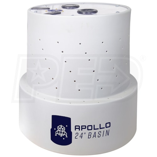 - Enhance Your Sump Pump Performance: The Apollo 24” Basin offers a modular bell-shaped design that makes it easy to install up to three sump pumps in the basin. Apollo comes standard with a built-in pump platform that keeps sediment from harming the pumps, providing durability and longevity to your sump pumps.