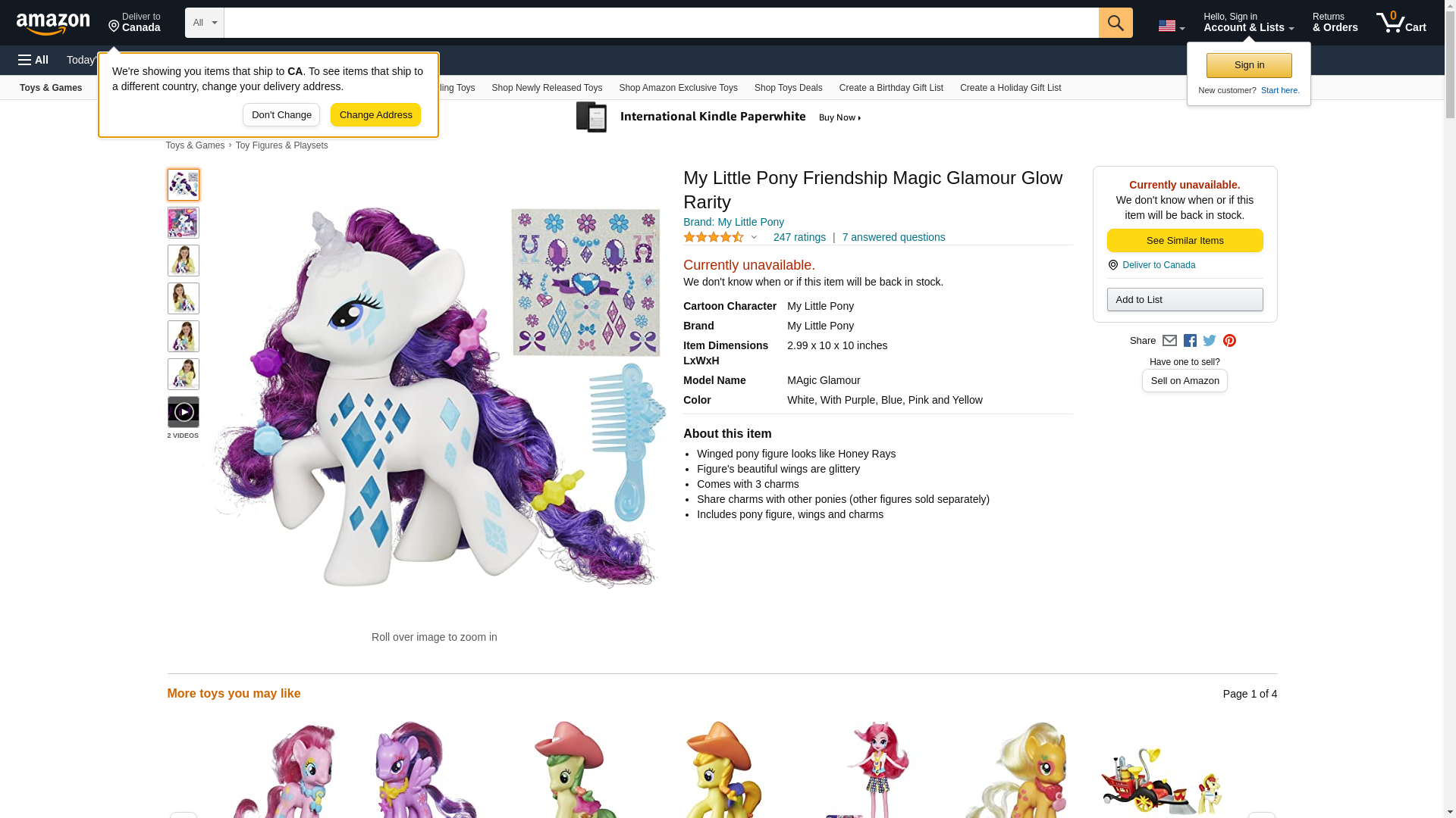 | Feature | Electronic My Little Pony figure looks like Rarity |