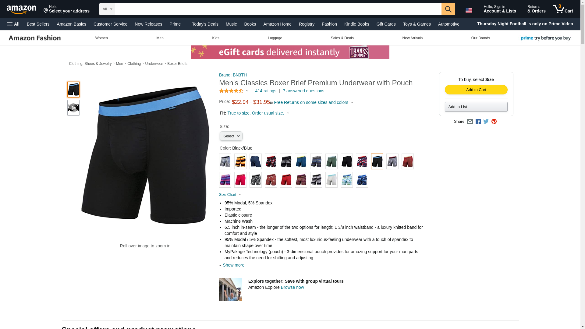 "BN3TH Men's Classics Boxer Brief, Blacl Blue, XL"