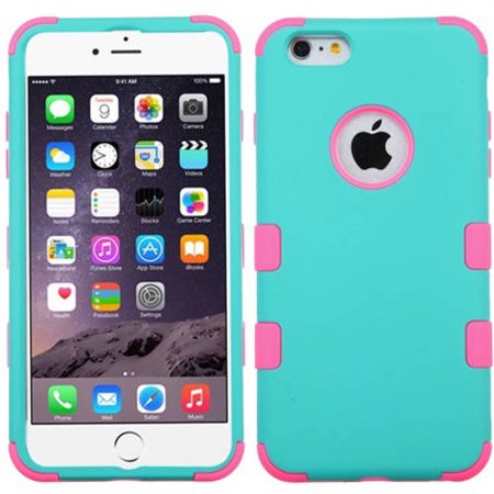 Asmyna Rubberized Tuff Hybrid Phone Protector Cover for iPhone 6 Plus - Retail Packaging - Teal Green/Electric Pink
