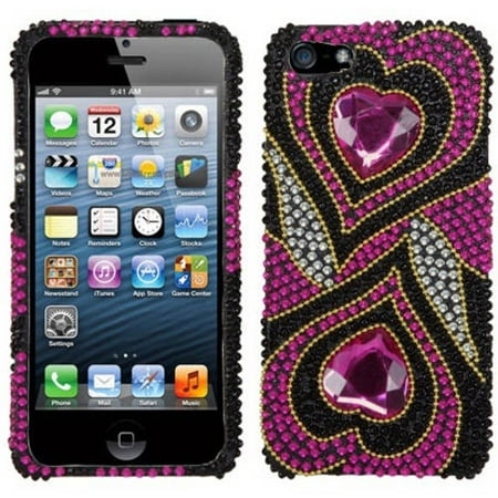 Asmyna IPHONE5HPCDM328NP Luxurious Dazzling Diamante Bling Case for iPhone 5 - 1 Pack - Retail Packaging - Hot Pink Hypnotic Hearts