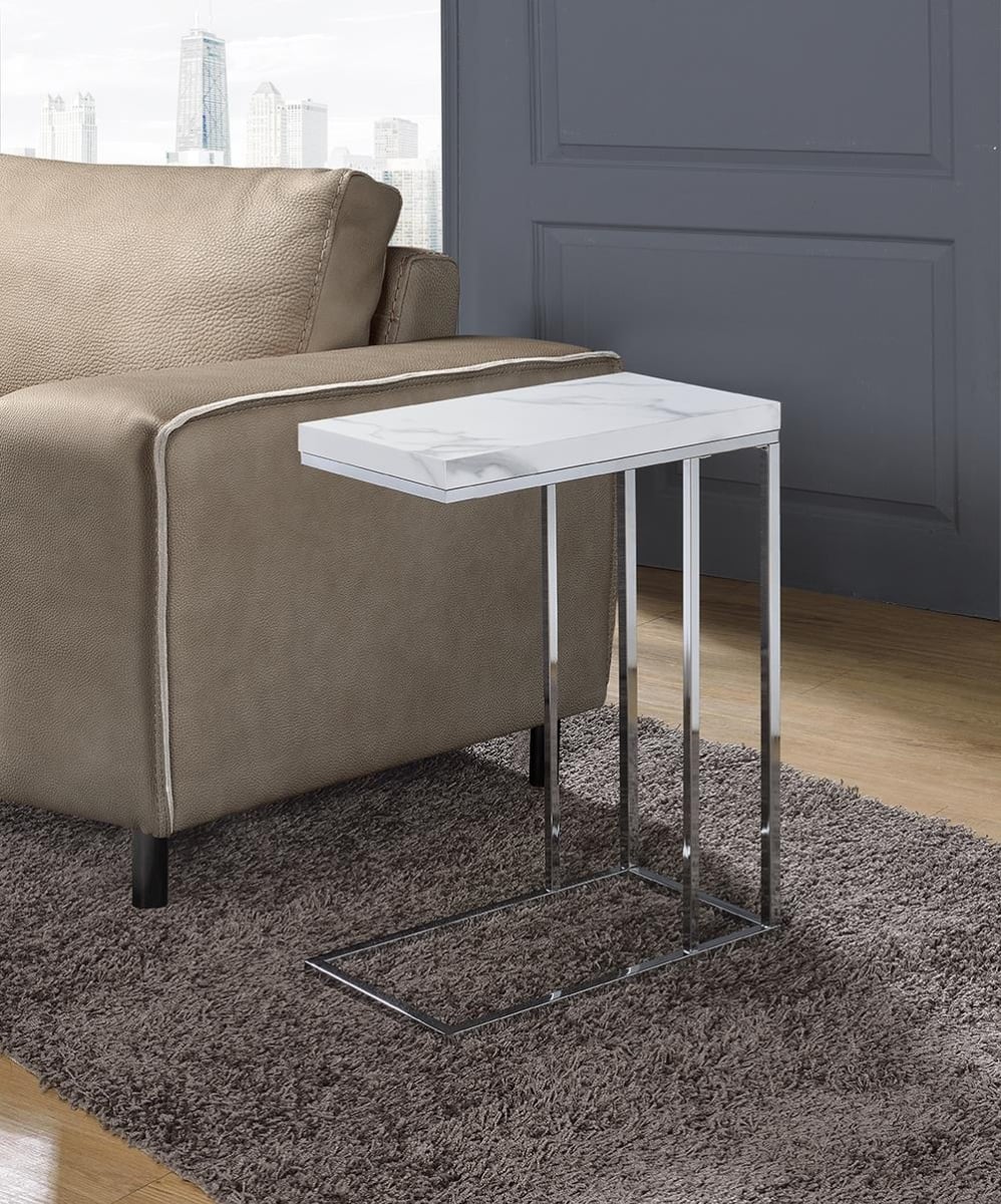 Myco Furniture AM110 10 x 18 x 25 in. Amelia Chair Side End Table, White & Chrome