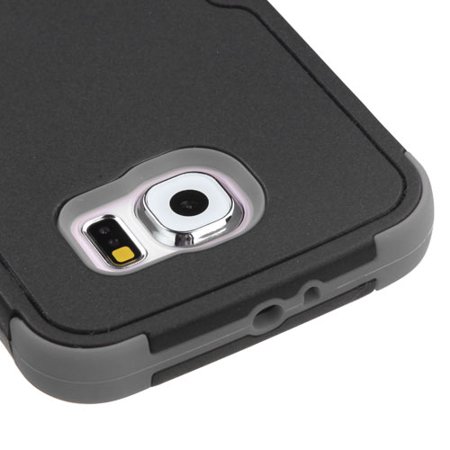 Asmyna Samsung G920 Galaxy S6 Tuff Hybrid Phone Protector Cover with Stand - Retail Packaging - Natural Black/Iron Gray